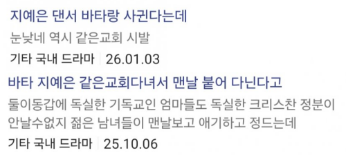이번 열애 소식이 더욱 화제를 모은 이유는 이른바 ‘성지글’ 때문이다. 약 6개월 전부터 온라인 커뮤니티에는 두 사람의 관계를 추측하는 글들이 꾸준히 올라왔다. “같은 교회를 다니며 자주 함께 있는 모습이 보인다”, “둘이 사귀는 것 아니냐”, “잘 어울린다”는 반응이 이어졌고, 일부 글에서는 결혼 가능성까지 언급되기도 했다.